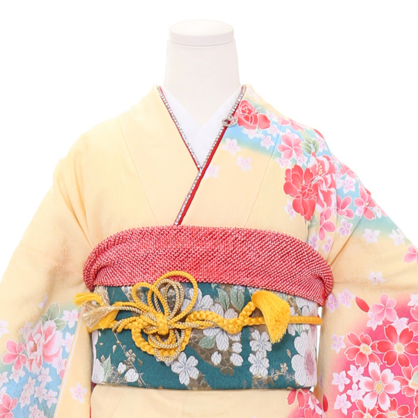 | 付属品 | 1.伊達締めx2 2.襟芯 3.腰ひもx5 4.前板 5.肌着 6.長襦袢 7.伊達襟 8.帯締め 9.帯あげ 10.袋帯 11.三段仮ひも 12.タオル 13.草履 14.足袋 15.かばん ※着付けに必要な一式すべて含みます。 |